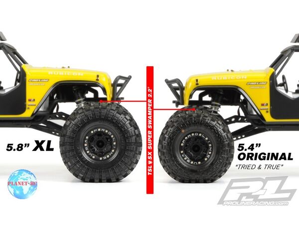 This is a pair of Super Swamper XL 2.2” Tires. Under official license from Interco Tire Corporation, Pro-Line is proud to announce the 2.2” TSL SX Super Swamper XL in the legendary G8 compound. With “almost scale” not being acceptable and access to Interco’s design data, Pro-Line’s engineering staff has reproduced the Super Swamper in a scale configuration matched by none. The new 2.2” XL is perfect for scale crawlers that want maximum ground clearance and unmatched rock crawling performance.