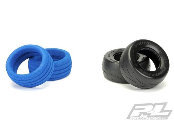 Pro-Line’s Prime tires feature unique grooves that add traction and stability when the track is freshly watered or when there is a slight layer of thin dust that would cause a traditional “slick” tire to spin. The raised treaded portion of the Prime tire has a distinctive rough surface texture similar to a ground “slick” tire and makes the Prime tire have the maximum performance right out of the package.