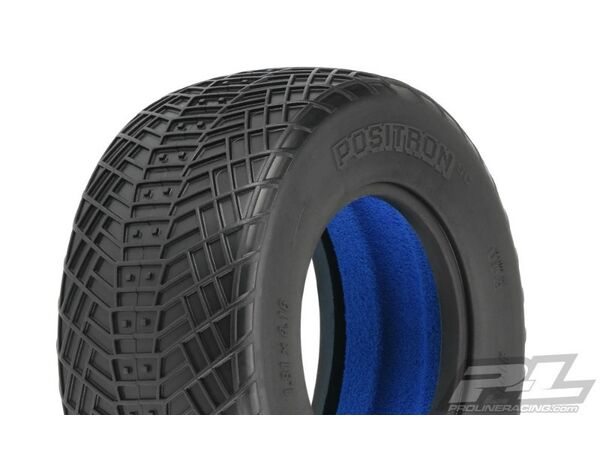 This is a pair of Positron SC Tires. The future of Short Course Tire Performance is here with Pro-Line's all-new SC Positron Tire! Designed from the ground up with a futuristic directional tread design, the Positron delivers true next generation performance with improved grip and corner speed on indoor clay tracks. The tread design pays homage to the Electron and ION tire before it with the 2 center pins boxed in by connected bars for a familiar Pro-Line signature look. From there the connected bars shoot off at angles that have been specifically designed to provide maximum Forward Bite combined with unmatched corner speed all while lasting longer than the competition. The Positron is directional, which adds another tuning option for the racers always looking for that extra edge since it will perform differently depending on which direction it is run