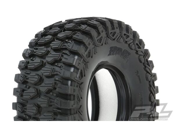 This is a pair of Hyrax All Terrain Tires for UDR. The future of Unlimited Desert Racer Performance has arrived with Pro-Line's all-new Hyrax Tire! Designed from the ground up for incredible grip and stability on the toughest terrain, the Hyrax tire is ready to tackle anything your UDR can dish out. The Hyrax features an aggressive open tread pattern with each tread block containing multiple sipes for improved traction. The highly detailed connected tread on the sidewall of the Hyrax extends out for added scale realism and sidewall rigidity to prevent traction rolls. The Hyrax is made from a special Desert Racing compound, so you know it provides the performance and durability that you can depend on. Don't get left behind, take your adventure to the next level with Pro-Line's new Hyrax tires!