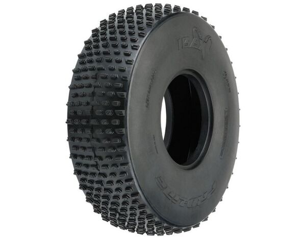 Designed from the ground up with input from multi-time Comp Crawling World Champion Jake Wright, the Ibex tire is 5.5" tall by 1.75" wide allowing for greater agility when tackling extremely tight gates with your MOA or Super Shafty comp rig. The multi-step tread pins on the Ibex are spaced out perfectly to dig into every possible edge on the rock face to give you an advantage over the competition. The Ibex 2.2" tire is made from Pro-Line's proprietary G8 compound for ultimate traction on any surface.