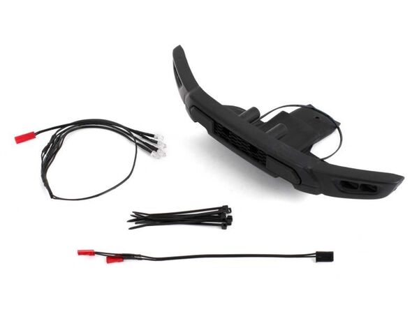 The Traxxas Ford® Raptor R™ set a new standard for replica scale detail in 1/10 scale short course trucks. With so much attention devoted to the Raptor R’s beautiful clipless body, it’s only fitting to add an LED light kit for even greater realism. The Raptor R LED light kit includes a replacement front bumper with integrated LED light bar and mounts for the Raptor’s existing running lights. Four bright LED headlights also come in the kit to fit the Raptor R’s existing headlight lenses. The LED light kit is fully waterproof for all-weather fun and includes wiring harness and zip ties.
