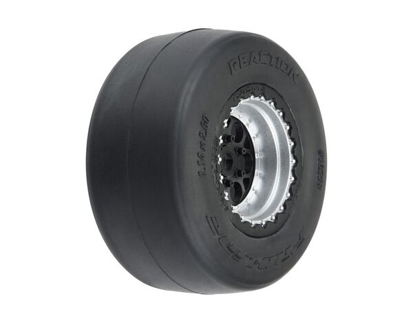 PRO1021810 | Reaction No-Prep Drag Racing Tires Mounted on Showtime+ Black/Silver Wheels for Losi® Mini No-Prep Drag Car Rear