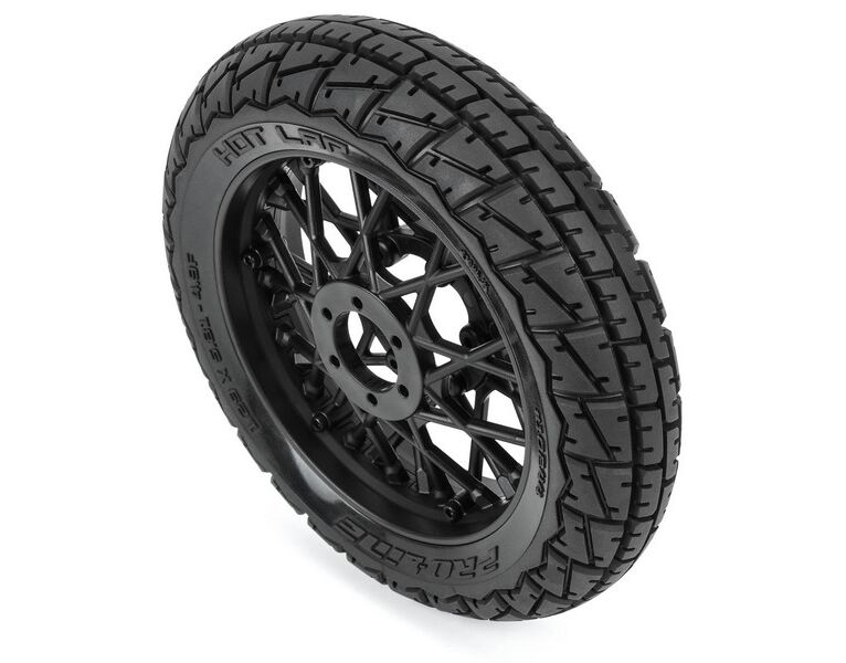 10244-10 Pro-Line Hot Lap S3 Motorcycle Front Tire Mounted on Black Supermoto Wheel Promoto-MX Front