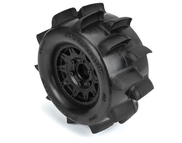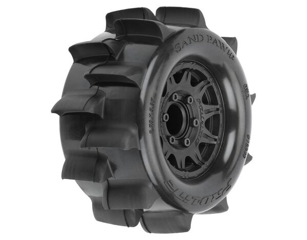 10249-10 Pro-Line Sand Paw HP BELTED 2.8" Sand Truck Ti res Mounted on Raid Black 6x30 Removable Hex (12mm & 14mm) Wheels (2)