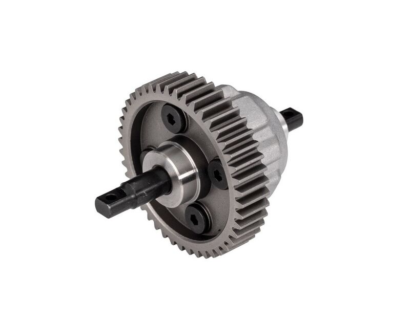 The high-performance center differential absorbs driveline shocks to improve durability and distribute power evenly for mind-bending acceleration. The finned aluminum housing helps dissipate heat with a tough 44-tooth, mod 1 (1.0 metric pitch) steel spur gear for maximum durability. The sealed differential comes pre-loaded with 100k silicone oil to help prevent unloading and ballooning of the