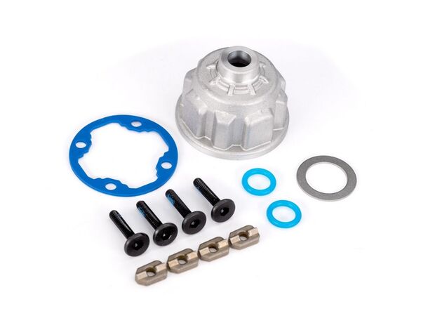 Carrier, differential (aluminum)/ o-ring gaskets (2)/ ring gear gasket/ spacers (4)/ 12.2x18x0.5 MW/ 3x15mm flat-head machine screws (with threadlock) (4)