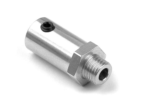 CNC-machined alu wheel adapter to mount hex-drive micro wheels on #103200 HUDY Micro Tire Truer for 1/18 + 1/24. Includes nut and setscrew.