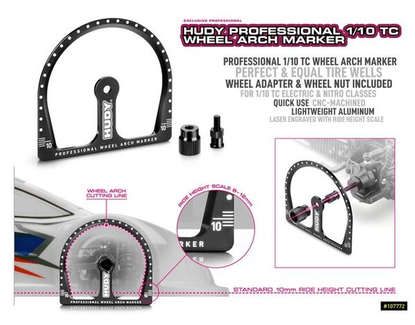 107772 Hudy HUDY Schablone für Radausschnitt 1/10 TC mit Radadapter und Mutter