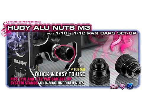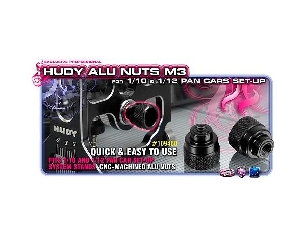 CNC-machined alu nuts for quick and easy use with the 1/10 & 1/12 pan car set-up system stands.