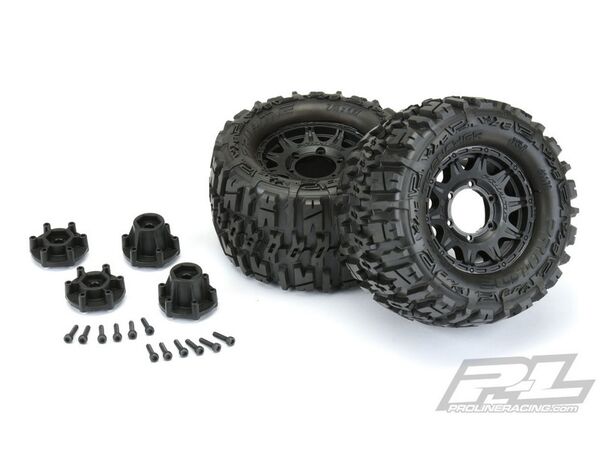 This is a pair of pre-mounted Trencher 2.8” Tires on Raid Removable Hex Wheels. Pro-Line is very excited to announce the availability of the Trencher 2.8" tire pre-mounted to the Raid Black 6x30 Removable Hex wheel! We take the guess work out of your glue job by doing the mounting for you so you can spend more time having fun!