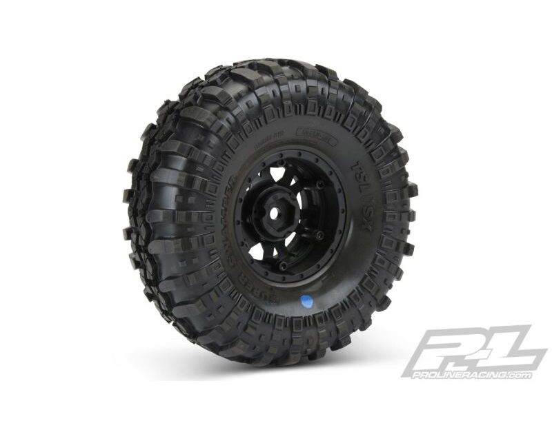 This is a Pre-mounted pair of 1.9" Super Swamper® XL Tires for Rock Crawling. Under official license from Interco® Tire Corporation, Pro-Line is proud to announce the 1.9" TSL SX Super Swamper® XL in the legendary G8 compound now available mounted on Impulse Black/Silver internal Bead-Loc wheels. With "almost scale" not being acceptable and access to Interco's design data, Pro-Line's engineering staff has reproduced the Super Swamper® in a scale configuration matched by none. The 1.9" XL is perfect for scale crawlers that want maximum ground clearance and unmatched rock crawling performance.