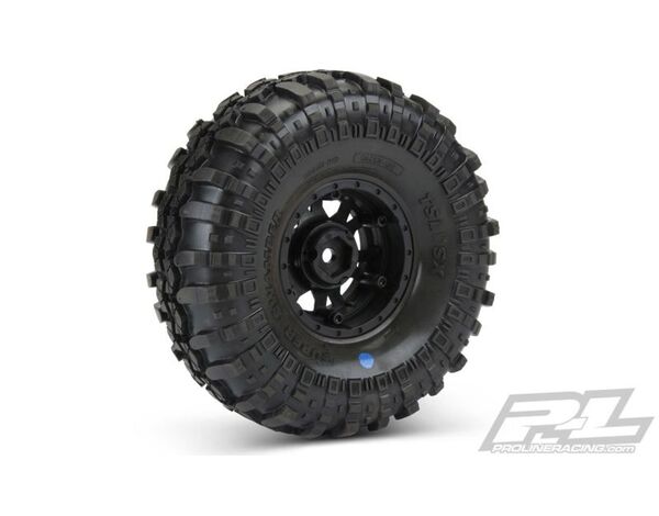 1197-13 Pro-Line Interco TSL SX Super Swamper XL 1.9" G8 Rock Terrain Truck Tires Mounted for Front or Rear 1.9" Rock Crawler, Mounted on Impulse Black/Silver Plastic Internal Bead-Loc Wheels 1 Paar Kompletträder 1.9" für 1/10 Scale Crawler This is a Pre-mounted pair of 1.9" Super Swamper® XL Tires for Rock Crawling. Under official license from Interco® Tire Corporation, Pro-Line is proud to announce the 1.9" TSL SX Super Swamper® XL in the legendary G8 compound now available mounted on Impulse Black/Silver internal Bead-Loc wheels. With "almost scale" not being acceptable and access to Interco's design data, Pro-Line's engineering staff has reproduced the Super Swamper® in a scale configuration matched by none. The 1.9" XL is perfect for scale crawlers that want maximum ground clearance and unmatched rock crawling performance. The Interco® 1.9" Interco TSL SX Super Swamper® XL tire comes conveniently pre-mounted to Pro-Line’s Impulse Black/Silver Plastic 1.9" wheels that