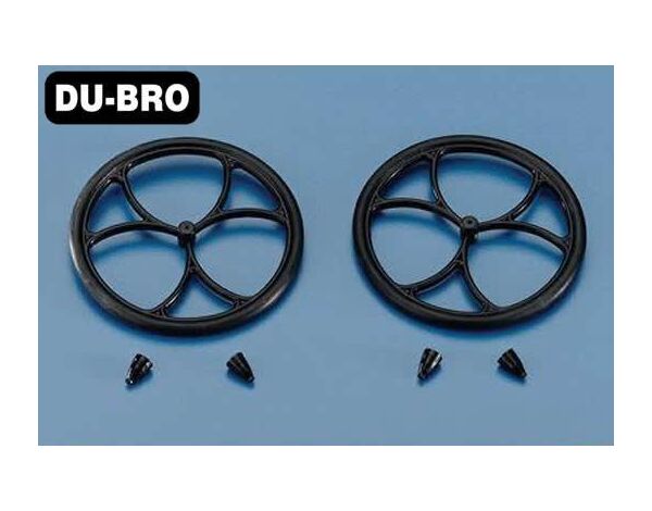 They feature a one piece design, with polished spokes and flat black wheel. Comes complete with 2 sets of wheel retainers and a wide axle hub for a true running wheel. Perfect for small electric aircraft. 1 pair/pkg.