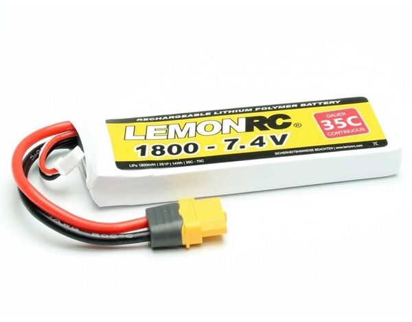 LEMONRC LiPo Akkus zählen seit über 15 Jahren zu den meistverkauften Lithium-Polymer Akkus. Dabei wurden die Marke LEMONRC im Hinblick auf Leistung und Lebensdauer ständig mit Hilfe neuester Technologien weiterentwickelt. Mit einer Dauerbelastbarkeit von bis zu 35C (70C Kurzzeit) bieten LEMONRC XT LiPo Akkus genügend Leistungsreserven für fast alle Anwendungen im R/C Modellsport.