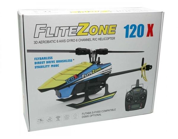 Der FliteZone 120X Helicopter ist der perfekte Einstieg in die Welt des 3D Kunstflugs. Einsteiger und Aufsteiger, die einen normalen Fix-Pitch Helicopter sicher fliegen können, machen mit dem 120X den nächsten Schritt bis hin zum 3D Flugprofi. Ein gravierender Unterschied ist die kollektive Blattverstellung des Hauptrotors (collective Pitch). Der 120X Helicopter verfügt generell über 2 Grundeinstellungen: Der vollstabilisierte 6X Modus mit dem der Heli ganz normal und hoch eigenstabil (ähnlich eines Anfängerhelicopters) geflogen werden kann und der 3D Modus der sämtliche 3D Flugfiguren inklusive Rückenflug beherrscht.
