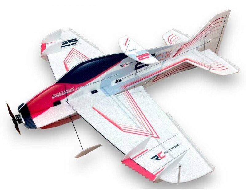 Der Clik 25 ist mittlerweile die weiterentwickelte 6. Generation des legendären Clik. Das Modell wurde komplett in EPP / Kohlefaser konstruiert und ist trotz sehr geringem Gewicht sehr robust. Die relativ rauhe Oberfläche des EPP Materials verleiht dem Modell hervorragende Langsamflugeigenschaften. Die aufgesetzten Spoiler und Diffusoren verbessern die Flugeigenschaften spürbar, wie z.B. auch das Messerflugverhalten.