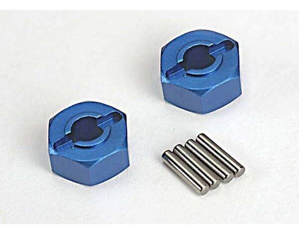 1654X Traxxas Wheel hubs hex (blue-anodized lightweight aluminum) (2)/ axle pins(2) 12mm Sechskant