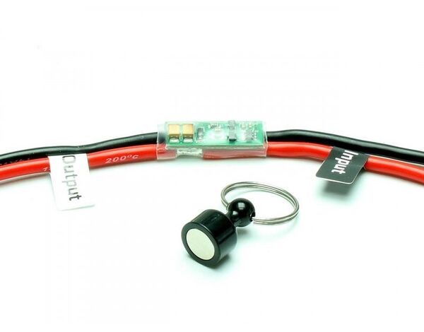 Leistungsfähiger, zuverlässiger Universal Schalter. Dadurch ist es möglich, die Stromquelle ein-/bzw. auszuschalten ohne einen mechanischen Schalter zu betätigen, bzw. das Modell öffnen zu müssen.