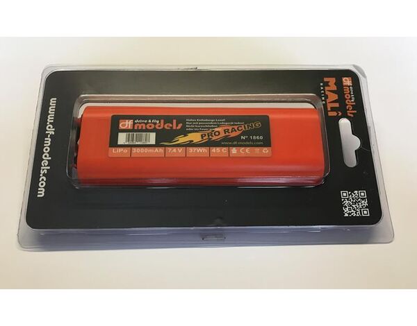 1860 dfmodels Mali Racing Lipo Akku 2S - 7,4 Volt - 3000mAh 45C - rund