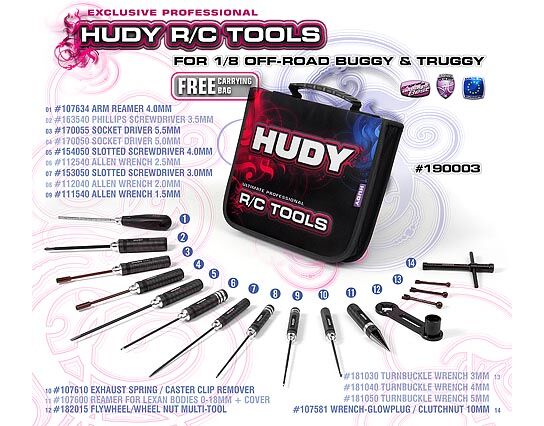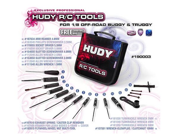 190003 SET OF TOOLS + CARRYING BAG - FOR 1/8 OFF-ROAD CARS
