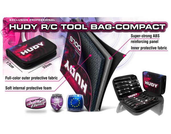 Premium-quality exclusive compact tool bag with a super-modern look with cool, stylish and full-color graphics around the bag. High-quality European materials and craftsmanship. Ideal size for carrying your RC tools and accessories.