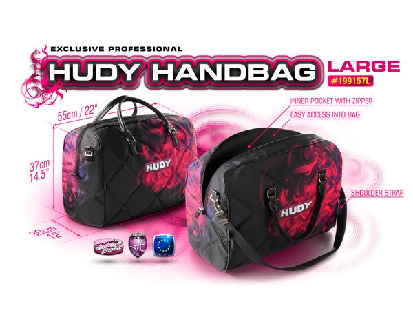 Manufactured in Europe from premium European high-quality materials, everything on this handbag is premium. Highest-quality materials combined with expert workmanship ensure the durability, performance, and long life of this handbag. For a unique and stylish look to separate you from the crowd, the HUDY handbag features full-colored stylish HUDY graphics emblazoned on the exterior.