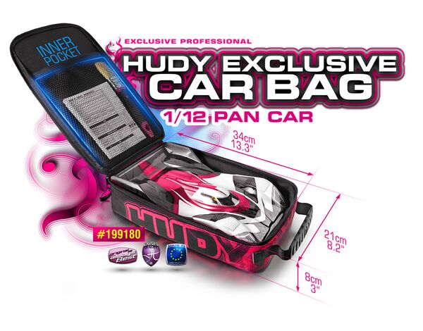 Stylish HUDY Exclusive Car Bag. With your R/C car being one of the single most important pieces of your racing equipment, it deserves all the protection it can get when traveling to & from races. Keeps your car safe and protected.