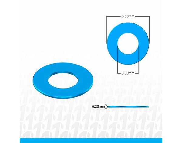 1up Racing Aluminum Precision Shim 3,0 x 6,0 x 0,25mm (12) - Bright Blue