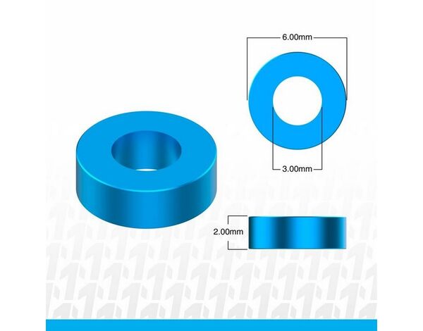 1up Racing Aluminum Precision Shim 3,0 x 6,0 x 2,0mm (12) - Bright Blue