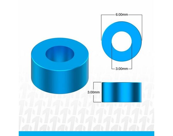 1up Racing Aluminum Precision Shim 3,0 x 6,0 x 3,0mm (12) - Bright Blue