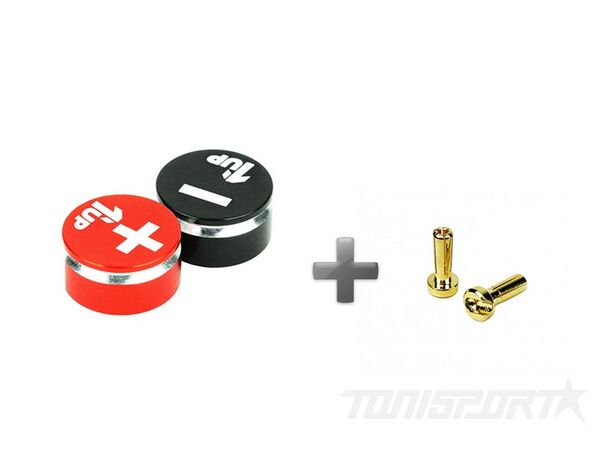 1UP-190431 1up Racing LowPro Bullet Plugs & Grips 4mm - Black/Red