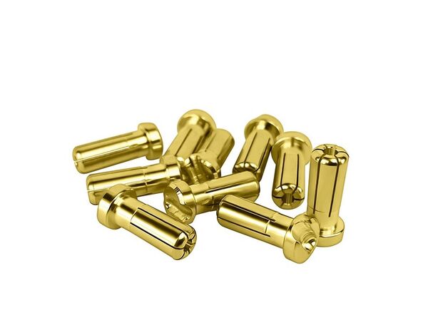 Mit den 1upRacing 4mm Goldsteckern ist der perfekte Stromfluss gesichert. Die Stecker haben einen flachen Kopf (2mm hoch) und eine extra Aussparung zum Anlöten des Powerkabels. Die Stecker sind 15mm lang und passen auch in die aktuellen ULCG Akkus hinein!