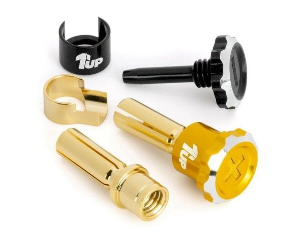 1up Racing Lockdown Adjustable Bullet Plugs 5mm - Gold / Black
