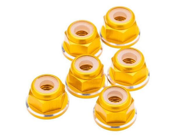 1up Racing M3 Premium Aluminum Flanged Locknuts - Gold Shine (6)