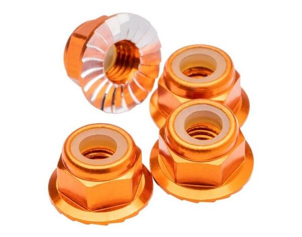 1up Racing M4 Flanged Premium Aluminum Locknuts - Orange (4)