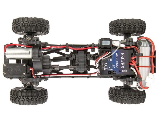 The Enduro24... A blast to drive! Whether it's outside on the trail or in the comfort of your own living room, there's no doubt this little rig will overcome the challenge. This small-scale, 4-wheel-drive crawler comes equipped with many features found on larger size rigs. Full-time 4-wheel-drive transmission with divorced transfer case, metal vertical chassis rails, and 4-link suspension ensure climbing over obstacles will be a breeze. Providing power and control is a 2-in-1 receiver/ESC, 2-channel radio, powerful servo, and single-cell LiPo. You get all this and more packed into a convenient package.