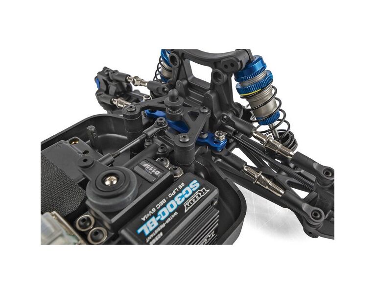 Aufgrund der laufenden Forschung und Entwicklung können die Fotos vom endgültigen Bausatz abweichen. Das auf diesen Seiten abgebildete Fahrzeug ist mit Teilen ausgestattet, die NICHT im Bausatz enthalten sind: Reedy-Motor, Akku, Regler, Servo, Empfänger und Ritzel. Montage und Lackierung erforderlich.