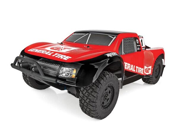 Der Team Associated Pro4 SC10 General Tire ist ein fahrfertiger RC-Short-Course-Truck mit Elektroantrieb - sieht super aus und fährt auch so! Das Fahrzeug verfügt über Komponenten, die bei RTR-Modellen nicht selbstverständlich sind, einschließlich einem leistungsfähigen wassergeschützten Reedy-Brushlessregler und Reedy 3300 kV-Brushless-Motor, eine Spritzwassergeschützte Empfängerbox, Einstellbare Öldruckstoßdämpfer mit Rändelmuttern und eine unabhängige Einzelradaufhängung.