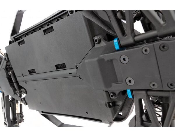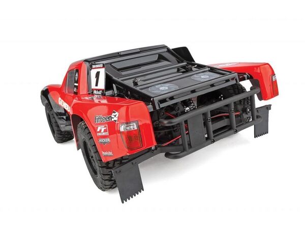 Im Antriebsstrang arbeiten drei robuste gedichtete Kegeldifferenziale. Der Short-Course Truck fährt und springt mit Fifteen52 Turbomac HD-Felgen durchs Gelände, auf die realistische General Tire GT® Grabber-All-Terrain-Reifen aufgezogen sind.