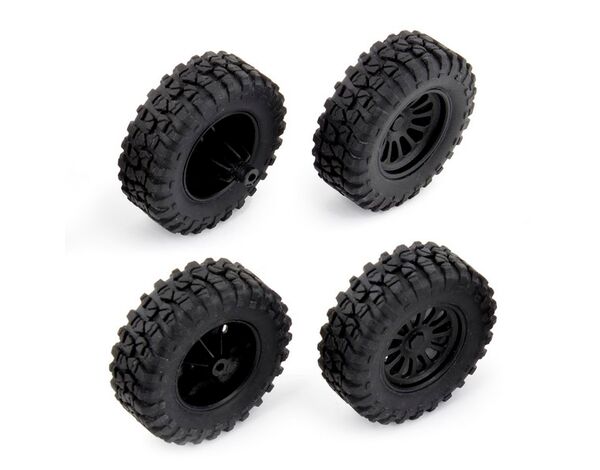 21431 Team Associated MT28 Front and Rear Wheels and Tires mounted