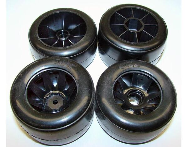 The new #2320 mounted tires are now available. Take them out of the bag and go have fun. High performance RT-1 tires that have proven themselves in the World GT-R category of racing. Same high performance, belted tire with great grip and durability. The RT-1 tire has ZERO degradation, as fast on run 20 as race 1. The RT-1 has super long wear, providing multiple SEASON of use on carpet surfaces. Now these awesome tires are available pre-glued to the best rim in the business, the CRC F1 Promount. Available as a set of 4 only.