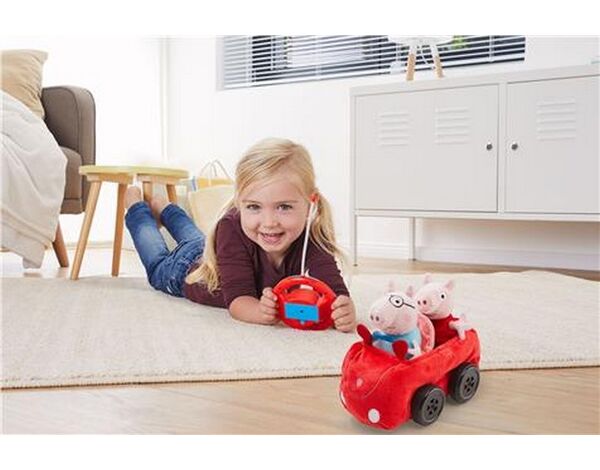- Auto mit herausnehmbaren Plüschfiguren von Peppa Wutz und Pappa Wutz, fixiert durch Klett