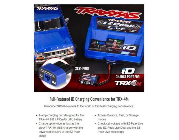 TRX-4M™ iD® charging port, 2-amp (for charging #2821 2-cell LiPo battery with Traxxas® EZ-Peak® iD chargers)