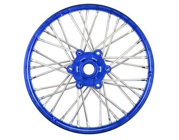 This is a Pre-Assembled Pro-Spec V2 Bead Aluminum Front Wheel for Losi® Promoto-MX. Pro-Line is taking motocross realism to the next level with this Pro-Spec anodized billet aluminum spoke wheel. Engineered for enthusiasts, this wheel is designed to perform in extreme environments while taking a beating.
