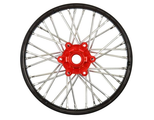 This is a Pre-Assembled Pro-Spec V2 Bead Aluminum Front Wheel for Losi® Promoto-MX. Pro-Line is taking motocross realism to the next level with this Pro-Spec anodized billet aluminum spoke wheel. Engineered for enthusiasts, this wheel is designed to perform in extreme environments while taking a beating.