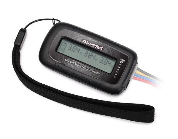 The Traxxas LiPo Cell Voltage Checker/Balancer connects to Traxxas LiPo batteries using the required Balance Lead Adapter (#2938X). Use the LiPo battery checker to view individual LiPo cell voltages and overall battery charge in the field without a charger. The battery cell checker works with 2, 3, and 4-cell Traxxas LiPo batteries and alerts you when a battery cell is out of balance.