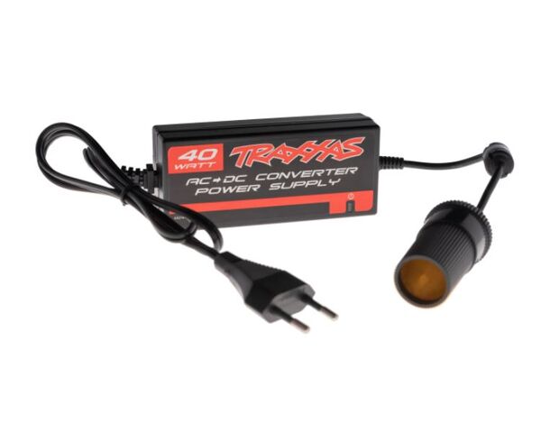Designed specifically for use with the Traxxas peak detecting DC fast chargers, the new AC to DC Adapter from Traxxas lets you plug your charger into a standard AC outlet at home or the track. Get the most out of your Traxxas DC fast charger with the Traxxas AC to DC adapter.