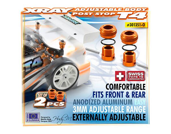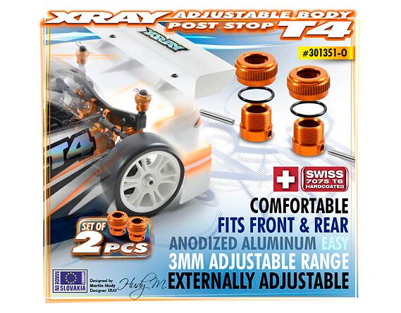 301351-O Xray ALU Karosserieauflage höhenverstellbar ORANGE (2)