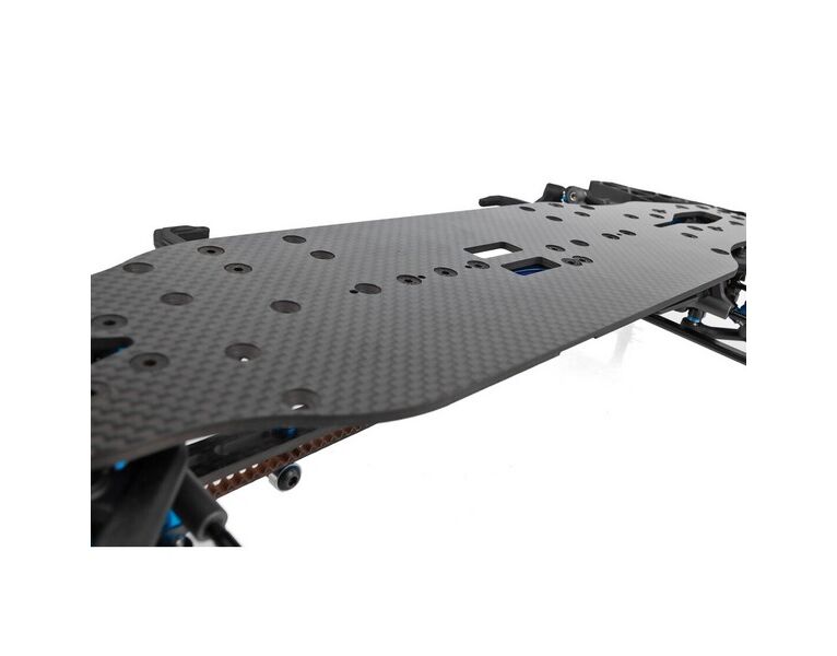 TC8GS Kohlefaser-Chassis: Feinabstimmung des Chassisflexes für optimale Leistung auf griffigem Untergrund.